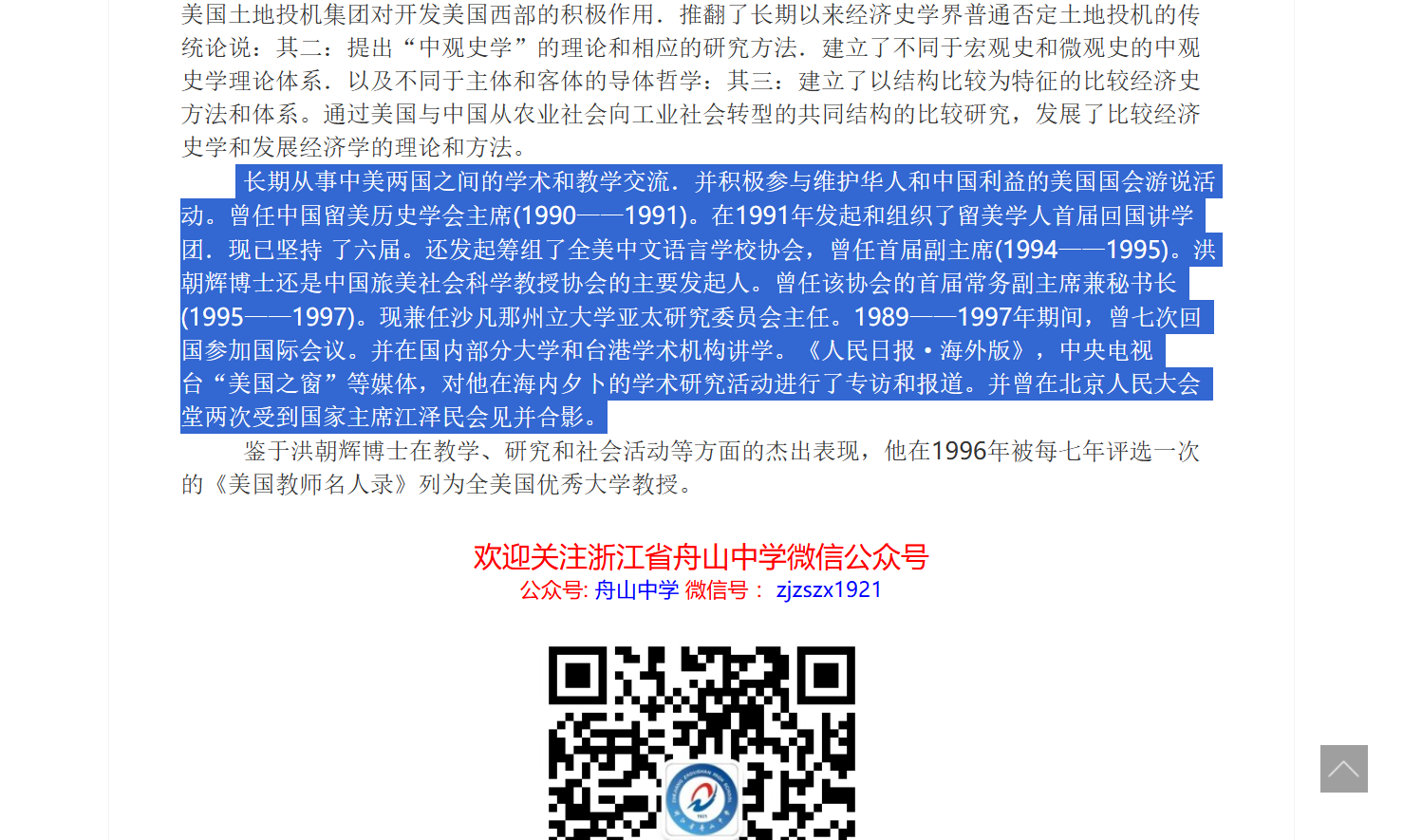 [6] (2008, November 3). Educator George Hong. Zhoushan Middle School in Zhejiang Province. Retrieved from: http://www.zjzszx.cn/pic_content.jsp?urltype=news.NewsContentUrl&wbtreeid=1329&wbnewsid=5775 The article “Educator George Hong” states: “George Hong... also initiated the establishment of the Chinese School Association In the United States (CSAUS) and served as its first vice president (1994–1995). Dr. Hong was also a key founder of the Association of Chinese Professors of Social Sciences In the United States (ACPSS) and served as its first executive vice president and secretary-general of the association (1995–1997). From 1989 to 1997, he returned to China seven times to attend international conferences and delivered lectures at several universities and academic institutions in mainland China, Taiwan and Hong Kong. He has been interviewed and reported by media outlets such as People’s Daily Overseas Edition and China Central Television (CCTV) for his academic research activities abroad. He was also twice received by and photographed with President Jiang Zemin at the Great Hall of the People in Beijing.”